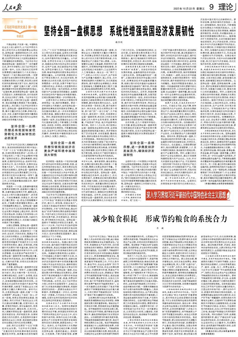 2025年10月22日,《人民日报》第9版(理论版)“深入学习贯彻习近平新时代中国特色社会主义思想·学习《习近平经济文选》第一卷专家谈”专栏刊发了我校经济学院特区港澳经济研究所副所长谢宝剑教授题为《坚持全国一盘棋思想 系统性增强我国经济发展韧性》的文章。